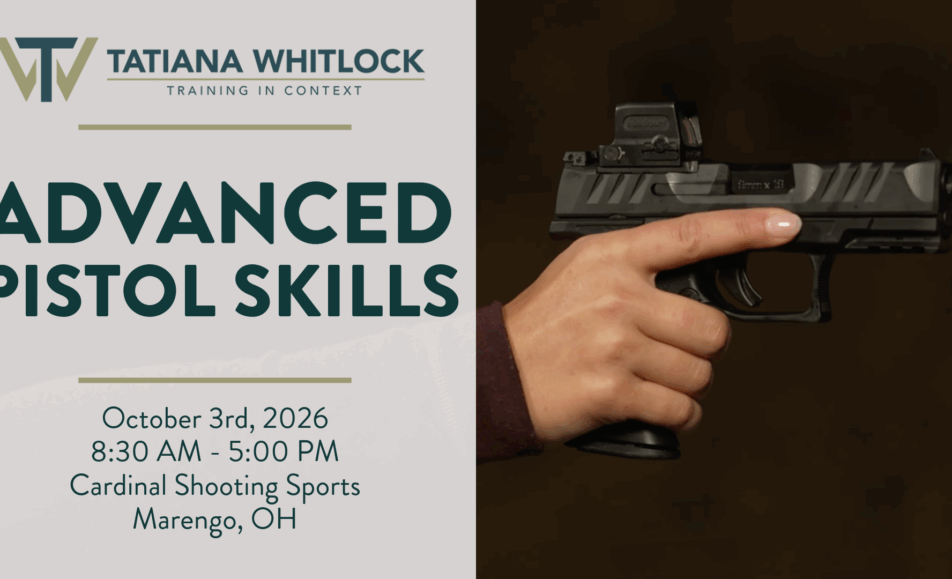 I was Tatiana’s RSO for this class. Love her! Her take on the fundamentals of stance and grip are unique to a more combat-focus than the usual competitive shooting. I like learning lots of tips and tricks from all shooting disciplines and seeing how different instructors approach basics. Very safe, very calming and personable.