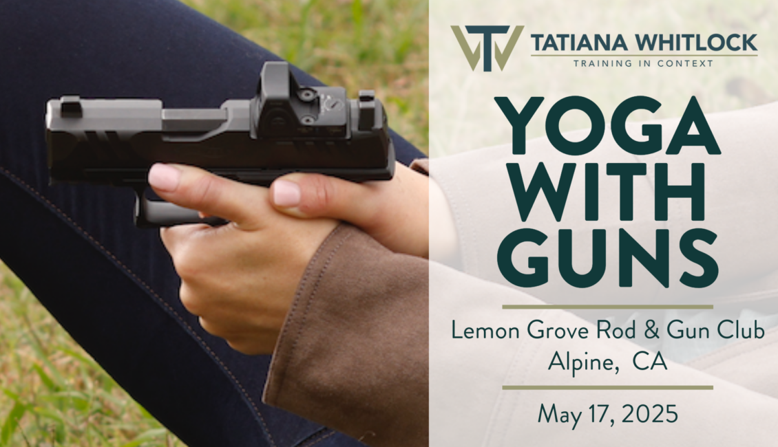 Yoga with Guns, also know as $#!t Happens is a 3-hour workshop dedicated to the worst case scenario – shooting from the ground. Whether we find ourselves fighting from the ground because we were pushed, or just have two left feet, learning how to manage yourself and your firearm safely from grounded positions is an important skill set to develop. Are you prepared to work through the awkward but highly likely non- standing (non-standard) positions you could probably find yourself in if a confrontation doesn’t go to plan and gravity wins? This session will have you on the ground, working two-handed, dominant and support hand only while adapting to what your body and vision need to be sucessful and safe. Learn techniques to overcome personal injuries and physical limitations in order to safely fight your way back to your feet. Being prepared means being ready to take control of the situation and respond appropriately when $#!t happens!