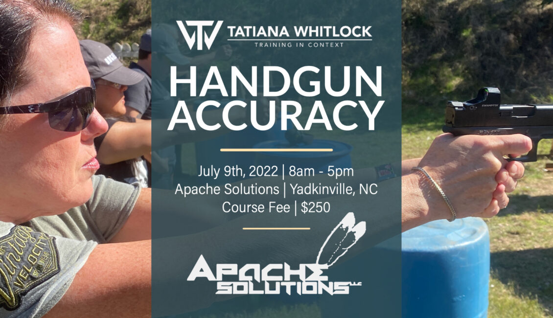 Hone your pistol accuracy skills and take your marksmanship to a higher level in this 8-hour course. This class aims to develop the core physical, visual and mental skills that produce consistent accuracy on target. Marksmanship skill builder drills and exercises raise the group’s performance and one-on-one instruction with Tatiana fine-tunes each individual student’s skills. A fun and challenging program for shooters of all skill levels!